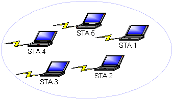 I ad hoc-tilstanden arbejder en trådløs netværksadapter i IBSS (independent basic service set), som vist i her. Alle stationer kommunikerer direkte med andre stationer uden brug af et adgangspunkt (AP).