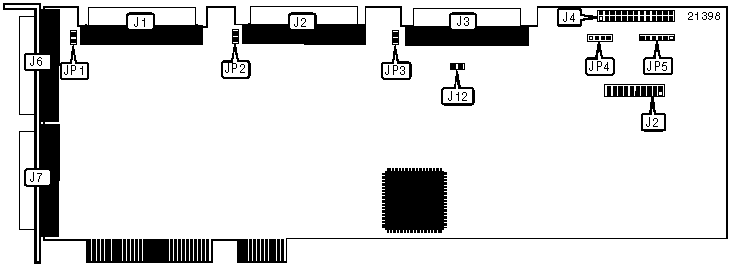 Note: If the system loses power or is reset while JP6/pins 5 & 6 are on, the data in cache memory will be lost. Install the optional cache batter backup module J2 to avoid data loss. | ||