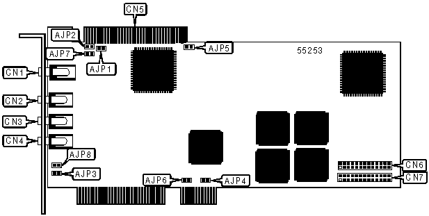 Composite video in, line in, line out (2), ISA connector, PCI connector, feature connector (2)