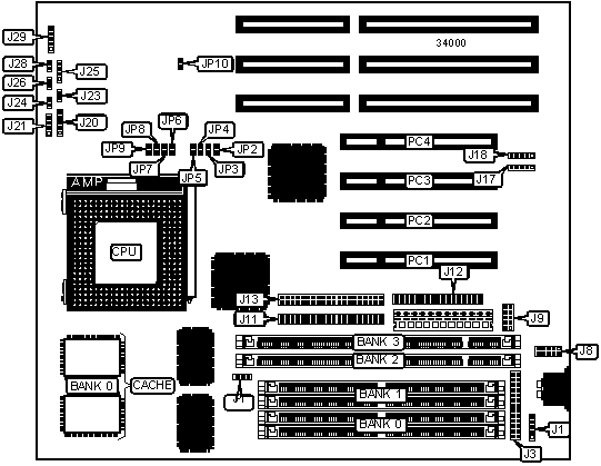 Note: Board accepts EDO memory. Banks 0 & 1 are interchangeable. | ||||
