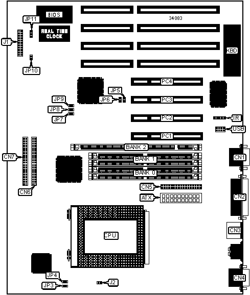 Note: Board accepts EDO memory. Banks are interchangeable. | ||