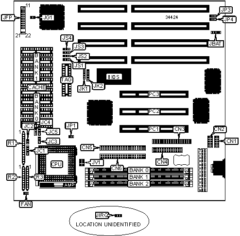Note: Board also accepts 512KB cache. The chip sizes and jumper settings are unidentified.