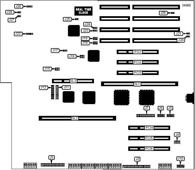 Note: Pins designated should be in the closed position. The location of J190 is unidentified. J15 sets CPU card 1 and J190 sets CPU card 2. | |||