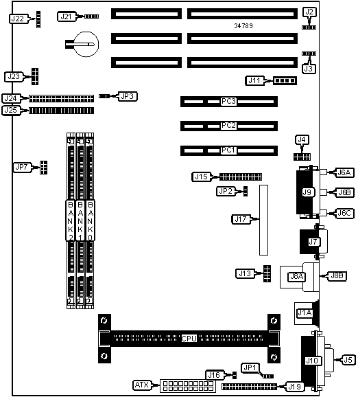 Note: To increase video memory from 2MB to 4MB, install upgrade in J17. |