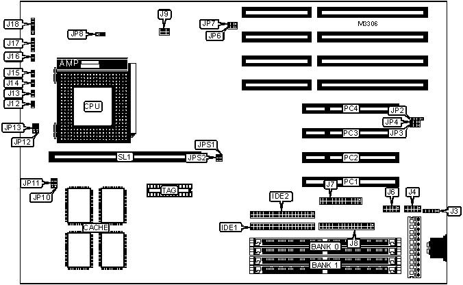 Note: Board accepts EDO memory. Board also accepts x 36 SIMMs.