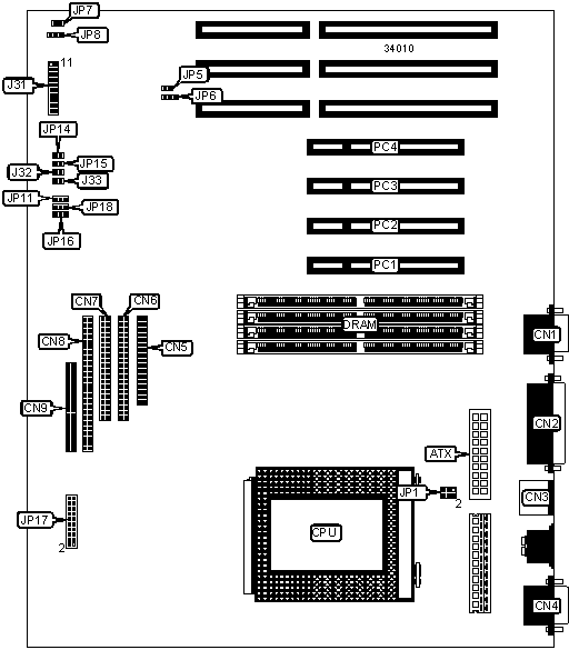 Note: Board accepts EDO memory. Board also accepts x 32 SIMMs. The location of banks 0 & 1 are unidentified. | ||