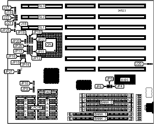Note: Board also accepts x 32 SIMMs. Do not use any other combination of SIMM configuration.