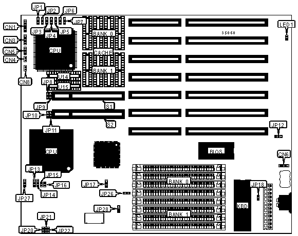 Note:The locations of JP23, JP24, and JP25 are unknown Note 1 :JP23 through JP28 are set at the factory depending on whether the R1 or R2 Model is shipped. | |||