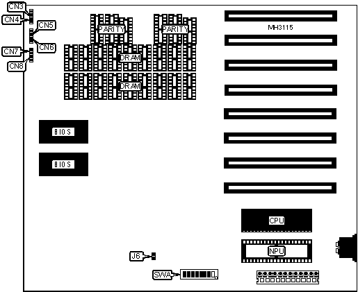 Note: The actual Bank 0, Bank 1 and parity locations are unidentified. The size of the chips are unidentified. |