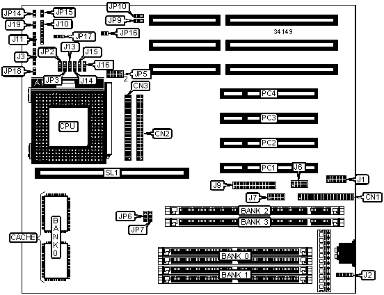 Note: Board accepts EDO memory. Banks are interchangeable. | ||