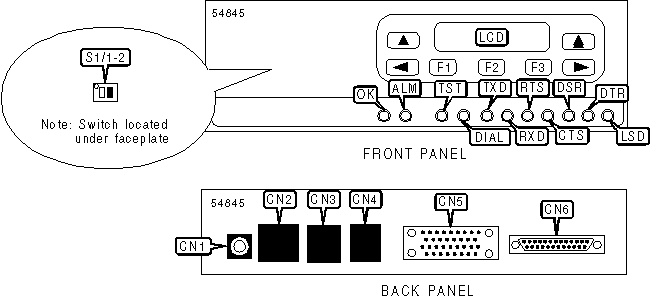 CC/DC via RJ-11 connector, digital network interface via RJ-48, analog network interface via RJ-45, power jack, DTE ports (2) |