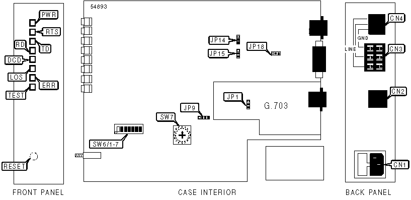 AC power connector, IR-G.703 RJ-45 connector, Network interface via terminal block and RJ-45 connector, |